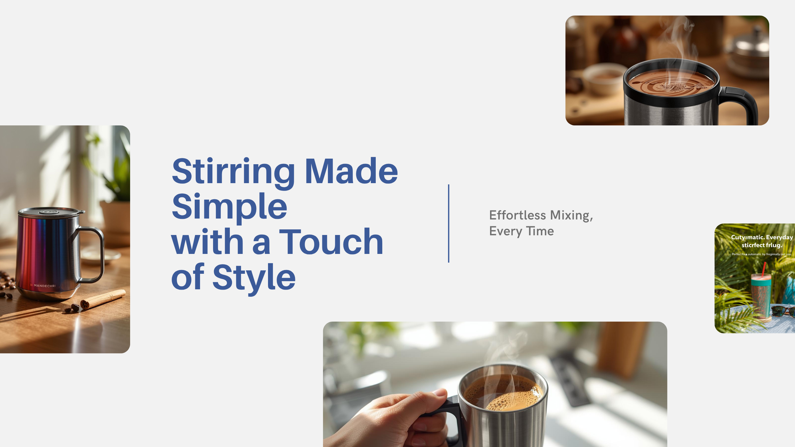 The SIMPLYLIVING™ Self Stir Cup features a built-in motor at the base that automatically stirs your drink with just the press of a button. Simply add your ingredients, press the stir button, and watch as your coffee, tea, or protein mix blends smoothly—no spoon required!